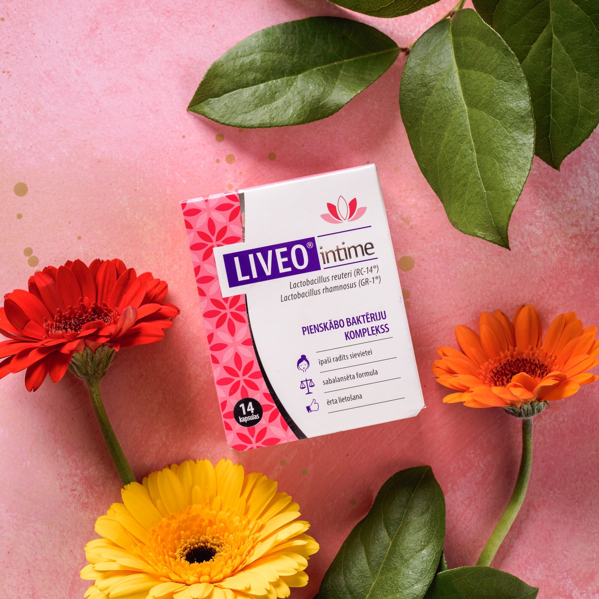LIVEO intime kapsulas satur pienskābās baktērijas (RC-14® un GR-1®), kas dabiski atrodas sievietes makstī. Katra LIVEO intime kapsula satur ne mazāk kā 2 miljardus efektīvu labo baktēriju inīmajai mikroflorai RC-14® un GR-1®.